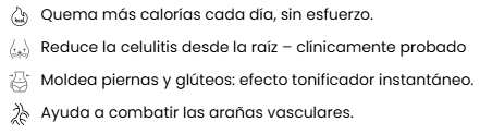 Después de dos meses, la textura 3D masajea suavemente y reduce la celulitis; me siento más segura con mis glúteos.
